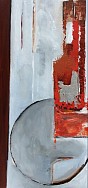 Schilderij ,in grijs-en roodtinten ,met zilver,op doek