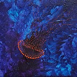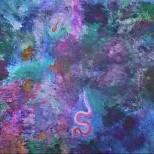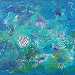 Een schilderij opgebouwd uit diverse lagen acrylverf, waarbij de kleuren in elkaar overvloeien. Daarna heb ik de lijnen gevolgd met een dot techniek, waarbij je kleine stippen maakt die vervolgens een eigen leven beginnen te leiden. Hier ontstond een onderwater beeld met allerlei (fantasie) zee dieren. Geschikt voor bijvoorbeeld een badkamer of kinderkamer.