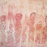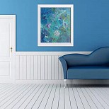 The main colours are blue and green in this "Underwater" piece. The basis consists of several layers of acrylic paint, using various techniques. Then, by following the lines and waves on canvas, the dreamy underwater landscape appeared almost by itself.
