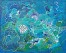 Groen en blauw zijn de hoofdkleuren van dit "onderwater" schilderij. De basis is opgebouwd uit laagjes acryl verf, aangebracht met verschillende technieken. Daarna zijn de lijnen en de fantasie dieren geboren door het volgen van de lijnen op het doek.