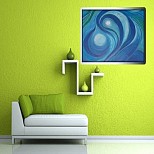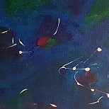 The base colours are purple and blue, blended intuitively. After the drying stage I followed the natural lines of the different shades, creating depth and fluid movement. After that some sea creatures popped up and wanted to be seen. Great fun !