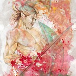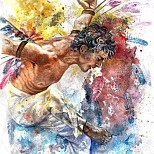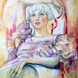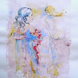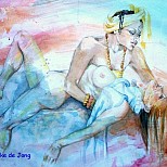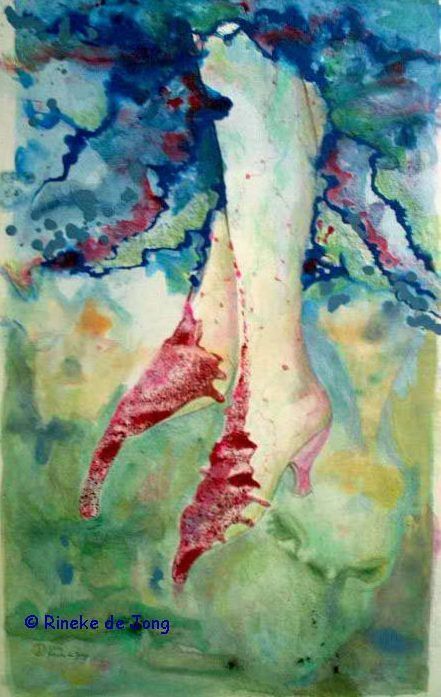 Een globale impressie van het schilderij "Wie de schoen past" 42x57cm.