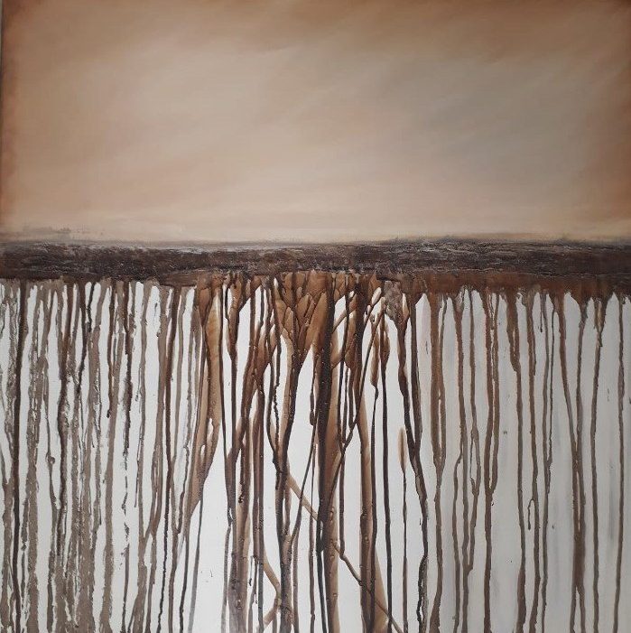 Een globale impressie van het schilderij "Misterieuse stilte" 70x70cm.