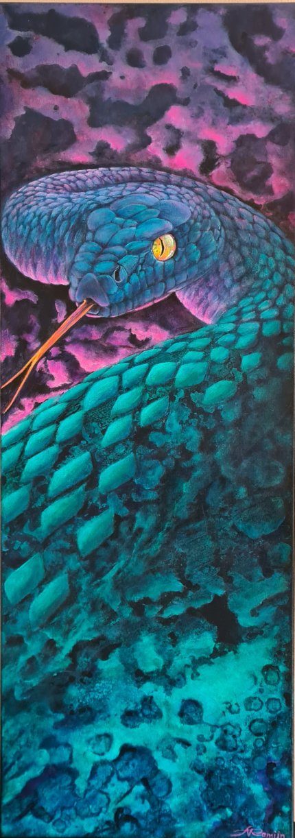 Een globale impressie van het schilderij "Fantasie snake" 40x120cm.