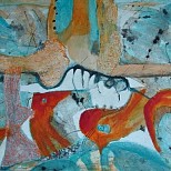 Een globale impressie van het schilderij "Er zijn 10 soorten sneeuw" 80x60cm.